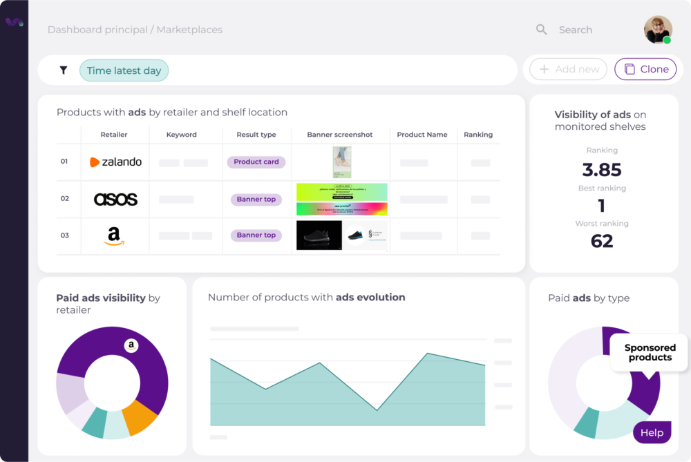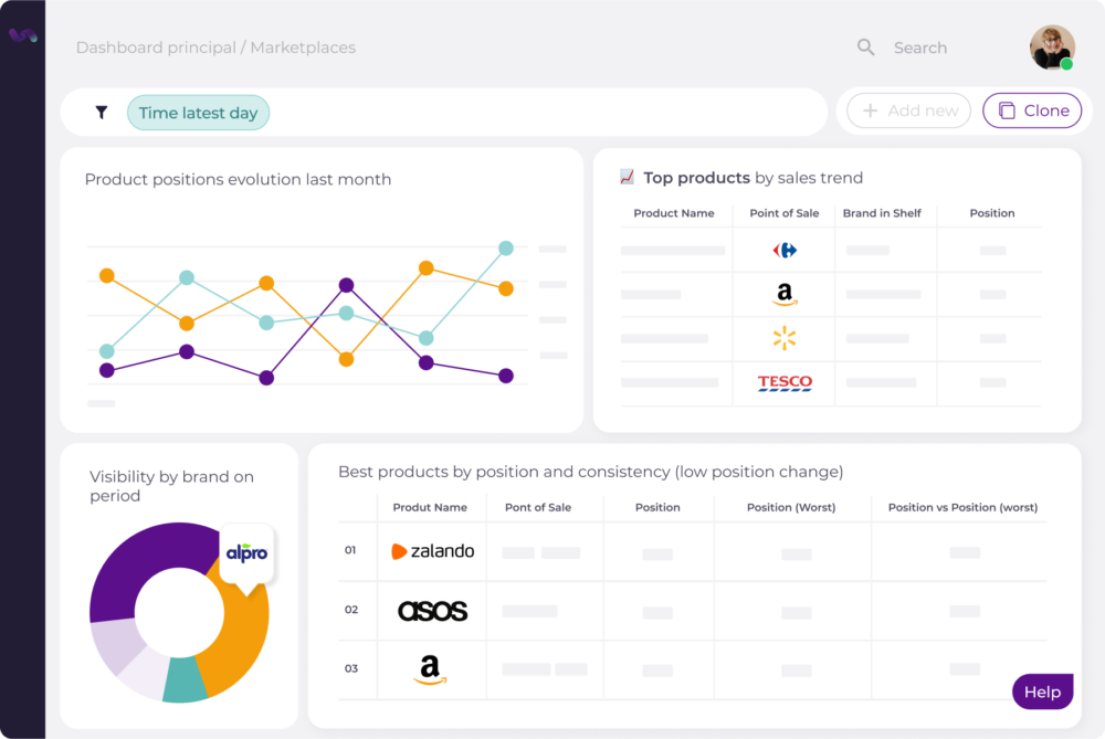Analyze the market in real time with our platform. Monitor your distributors and competitors as well as brand positioning and trends. Make strategic decisions thanks to our leading technology to maximize your competitiveness, sales, margins and omnichannel image.